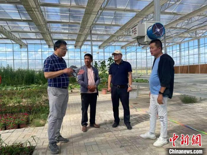 圖為范丹(左一)在當(dāng)?shù)剡M(jìn)行花卉種植產(chǎn)業(yè)指導(dǎo)。德令哈融媒體中心 供圖