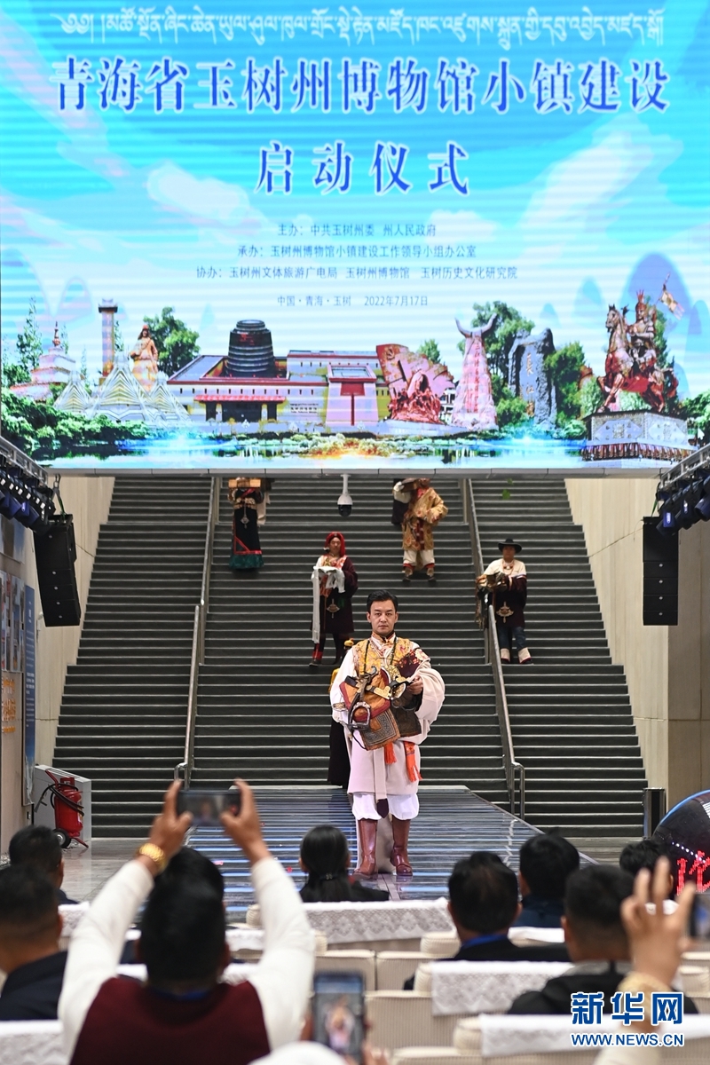 這是17日拍攝的青海省玉樹州博物館小鎮(zhèn)建設(shè)啟動(dòng)儀式現(xiàn)場,模特正在展示博物館藏品。新華社記者 范培珅攝