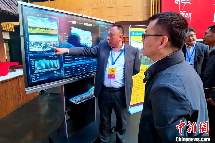圖為工作人員為客商介紹玉樹牦牛智慧牧場(chǎng)系統(tǒng)。李雋 攝