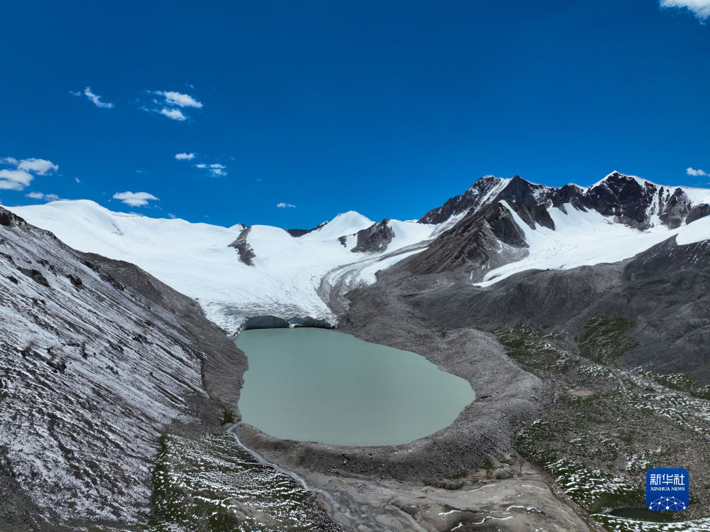 這是7月21日在長江源地區(qū)拍攝的冰川與湖泊(無人機照片)。新華社記者 張龍 攝
