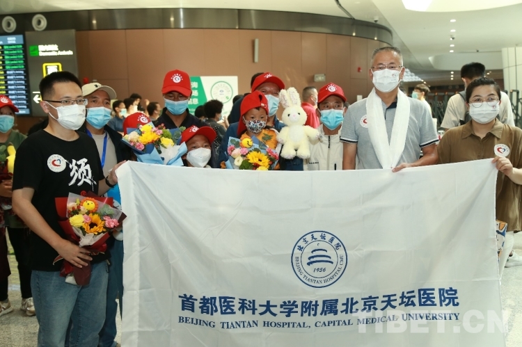 圖為7月24日即將前往首都醫(yī)科大學(xué)附屬北京天壇醫(yī)院的患兒、家屬及院方代表