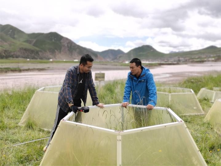 “模擬增溫試驗”是國際上觀測不同增溫狀態(tài)下植物生態(tài)系統(tǒng)變化的主要研究方式。這項實驗通過在草地上安裝不同高度的溫箱,布設傳感器觀測箱內(nèi)溫度,模擬形成不同增溫條件,從而分析以高原嵩草為優(yōu)勢種的高寒草甸植被對氣候變暖的響應。