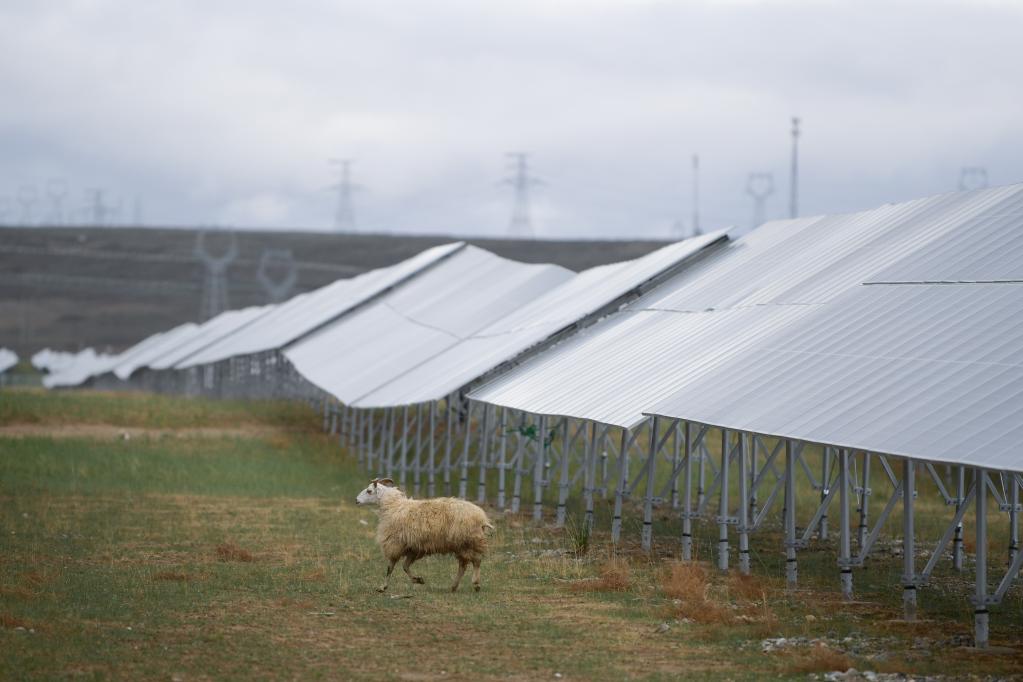 青海省海南藏族自治州,綿延數(shù)百平方公里的塔拉灘生態(tài)光伏發(fā)電園區(qū)里,深藍(lán)色的“光伏海洋”蔚為壯觀,光伏板下牧草茂盛,綠意盎然。