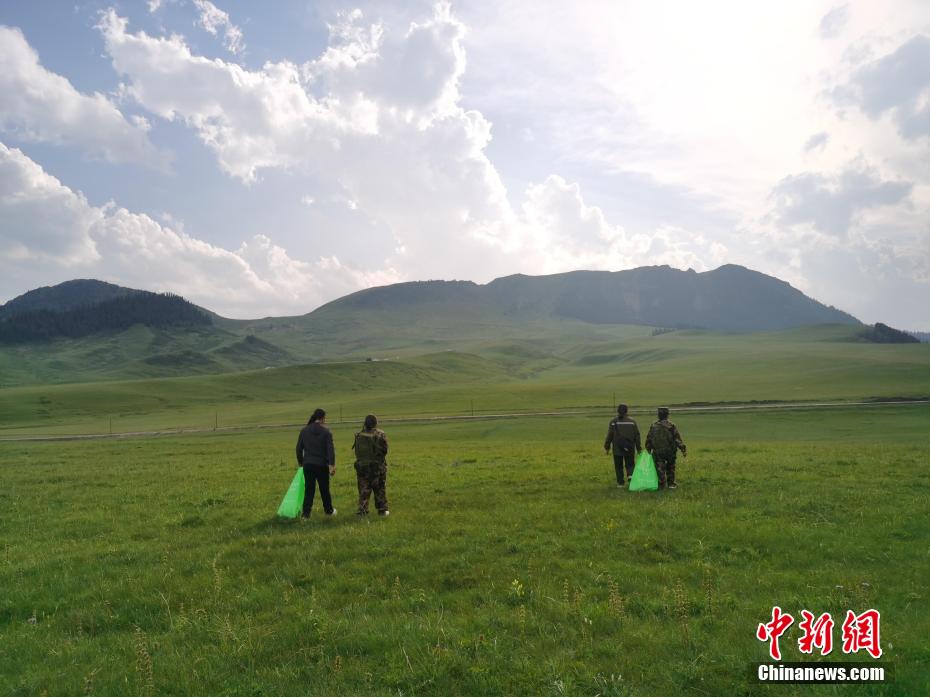 圖為生態(tài)管護員在草原撿拾垃圾。張?zhí)砀?攝