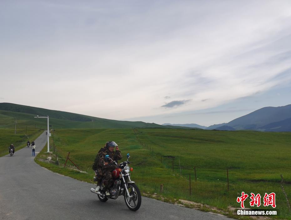 圖為生態(tài)管護員騎摩托車行進。張?zhí)砀?攝