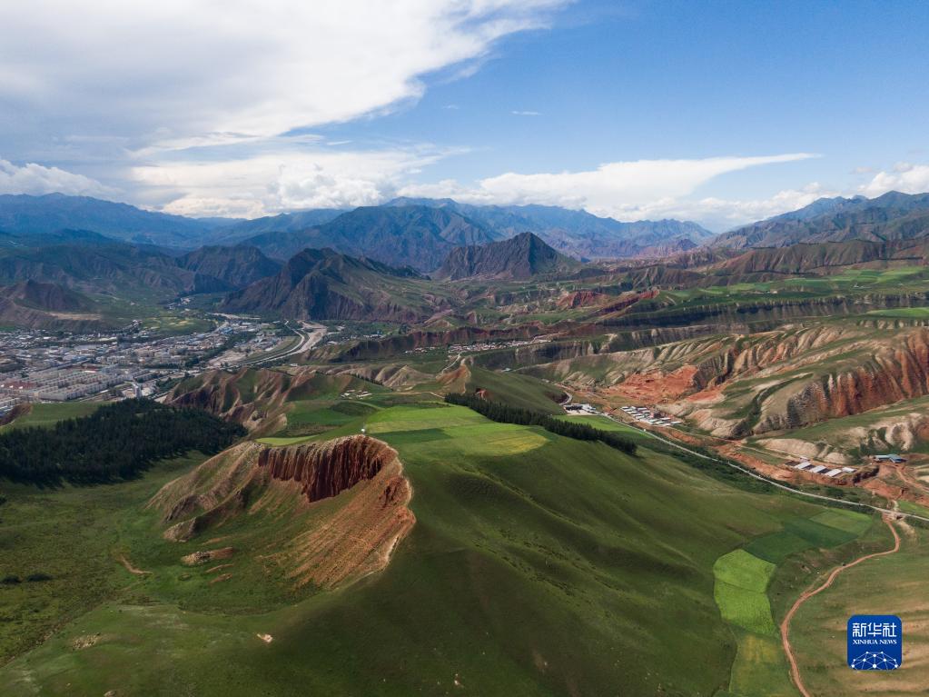 青海省海北藏族自治州祁連縣風(fēng)光(8月10日攝,無人機(jī)照片)。新華社記者 張龍 攝