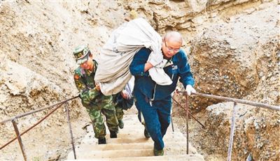 上橋,有兩條路線:一是開車走盤山“搓板路”,路遠(yuǎn)難行還危險;二是徒步爬一條直通橋上的水泥臺階,150級,坡度近70度,被執(zhí)勤部隊(duì)官兵形容為“天梯”。高海拔下,二十來歲的年輕戰(zhàn)士,走“天梯”都會頭暈?zāi)垦?,?976年生人的葛軍,為節(jié)省時間,每次都選擇扛著郵包往上爬。