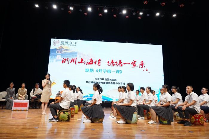 9月1日,在四川省甘孜州理塘縣二中報(bào)告廳內(nèi),進(jìn)行了一場別開生面的開學(xué)第一課。相隔2500公里的四川省甘孜州理塘縣二中和浙江省杭州市錢塘區(qū)下沙中學(xué)的學(xué)子們,一起“跨越千山萬水”,通過視頻連線開展了一場充滿著喜悅、溫情、感動(dòng)和希望的新學(xué)期課程。