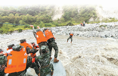在震中瀘定縣磨西鎮(zhèn)磨子溝村,有部分傷員和群眾被滾滾急流困住。面對險情,參與救援的一線特警隊(duì)員毫不猶豫,用身體和繩索搭起“生命通道”,迅速轉(zhuǎn)移被困群眾。[詳細(xì)] -