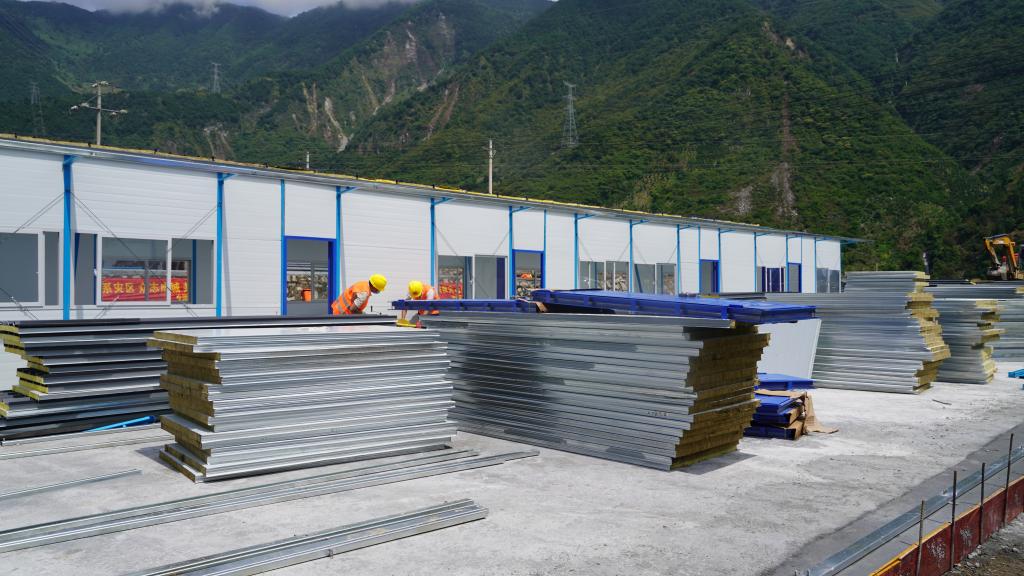 在得妥鎮(zhèn)天池山村繁榮集中過渡安置點工地里,200多名施工人員正在抓緊進行安置點的板房安裝?!澳壳拔覀円淹瓿?20套板房安裝,預(yù)計受災(zāi)群眾可于10月初入住。”總承包單位華西集團四川省建筑機械化工程有限公司項目負(fù)責(zé)人王偉介紹,該安置點還將配備公共衛(wèi)生間、公共浴室、廚房、健身器材等設(shè)施,為受災(zāi)群眾在過渡安置期間創(chuàng)造安全便利的生活條件。