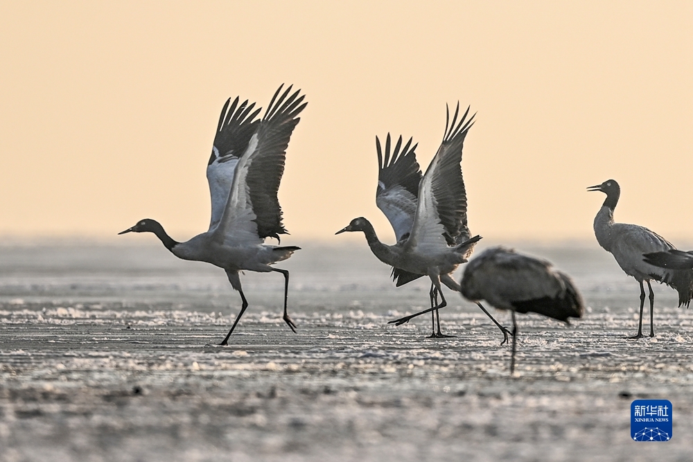 “只有人鳥共生,才能長遠發(fā)展”,已成為眾多黑頸鶴保護地的共同理念。在甘肅尕海,周邊禁止采砂、退出采礦、禁牧休牧,湖泊告別三度干涸歷史,水域面積不斷擴大,黑頸鶴回歸翱翔;在云南大包山,當?shù)貙嵤⒌厣鷳B(tài)修復(fù)項目,恢復(fù)濕地超過9000畝,為黑頸鶴預(yù)留更多棲息生態(tài)空間。