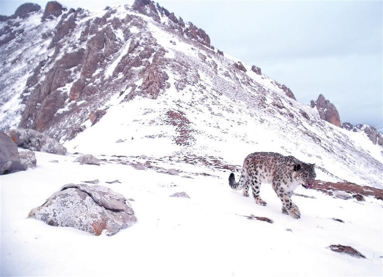 紅外線相機(jī)監(jiān)測到的國家一級保護(hù)動物雪豹。甘南州生態(tài)環(huán)境局供圖