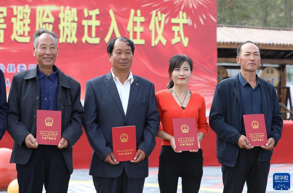 9月15日,在甘肅省武威市天祝藏族自治縣生態(tài)及地質(zhì)災(zāi)害避險(xiǎn)搬遷入住儀式上,祁連鎮(zhèn)116戶群眾拿到不動(dòng)產(chǎn)權(quán)證書,入住新房。作為生態(tài)脆弱地區(qū),天??h通過(guò)生態(tài)及地質(zhì)災(zāi)害避險(xiǎn)搬遷工作,嘗試解決地質(zhì)災(zāi)害威脅和發(fā)展受限問(wèn)題。