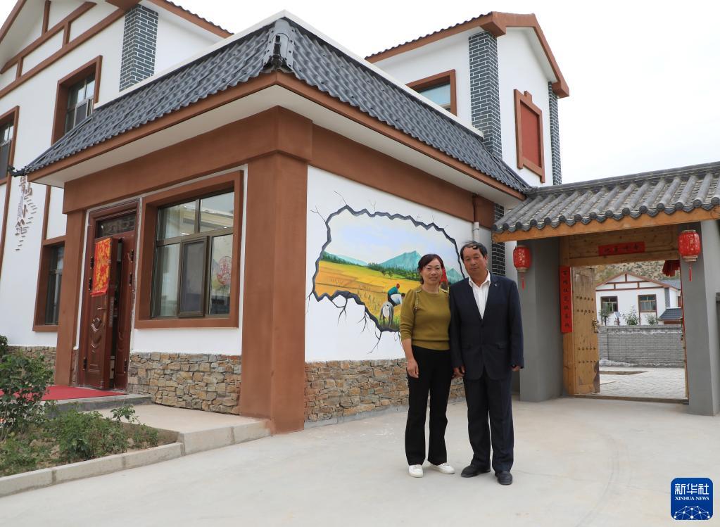 9月15日,在甘肅省武威市祁連鎮(zhèn)祁連村下河安置點(diǎn),村民鄧發(fā)斌和妻子在新房門前合影。新華社記者 張智敏 攝