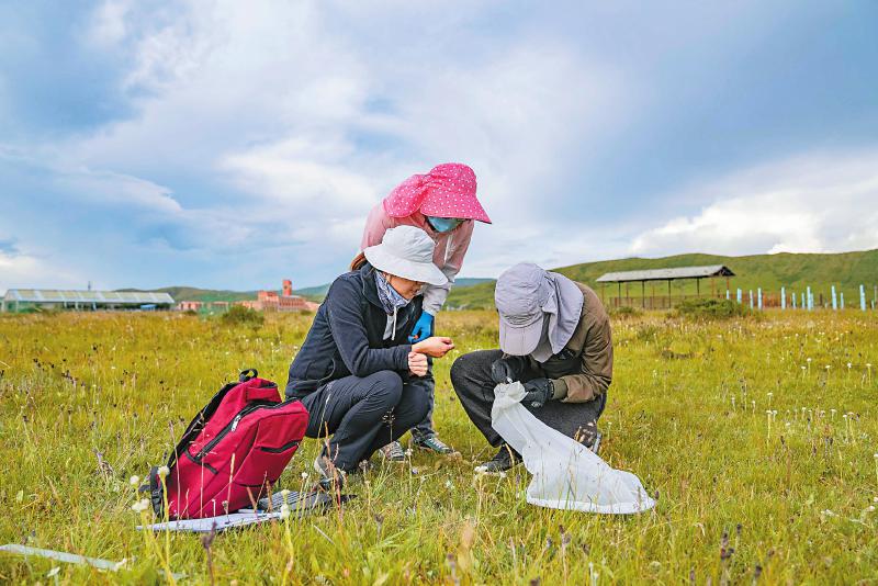 南京大學(xué)張玉霞博士和研究團(tuán)隊(duì)在四川若爾蓋高寒濕地生態(tài)系統(tǒng)國(guó)家野外科學(xué)觀測(cè)研究站開(kāi)展昆蟲(chóng)研究。本版圖片均由四川日?qǐng)?bào)全媒體記者 李強(qiáng) 攝