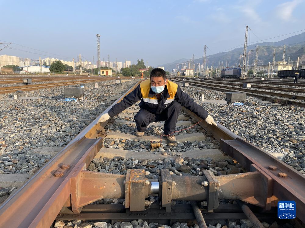 圖為西寧電務段駝峰信號工區(qū)工長張金玉測試信號設備。新華社發(fā) 李紅蘭 攝