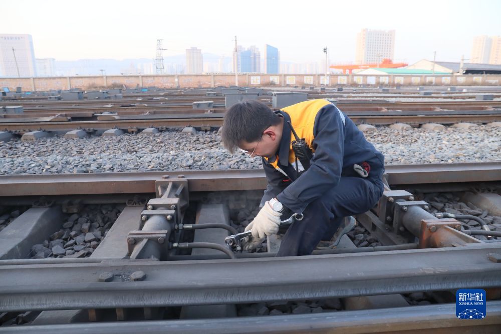 圖為西寧電務段職工維修減速器。新華社發(fā) 許娜 攝