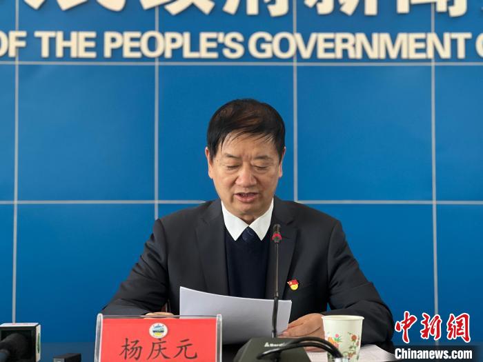 圖為青海湖景區(qū)保護(hù)利用管理局副局長楊慶元在新聞發(fā)布會(huì)上作發(fā)布。李江寧 攝