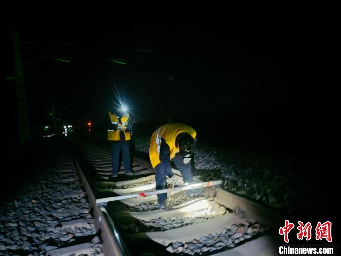 在現(xiàn)場,“精調師”們戴著頭燈、手握道尺,十步一跪趴查看著高低方向、三步一彎腰量取著軌距水平、一步一低頭配發(fā)著軌底墊板,并不時在鋼軌上標記緊固螺栓的先后次序,井然有序。“多年維修和養(yǎng)護積累了不少的經驗,加之近幾年有了大數(shù)據(jù)和技防設備的加持,讓我們處理各項隱患更加得心應手?!泵啾蠼榻B。