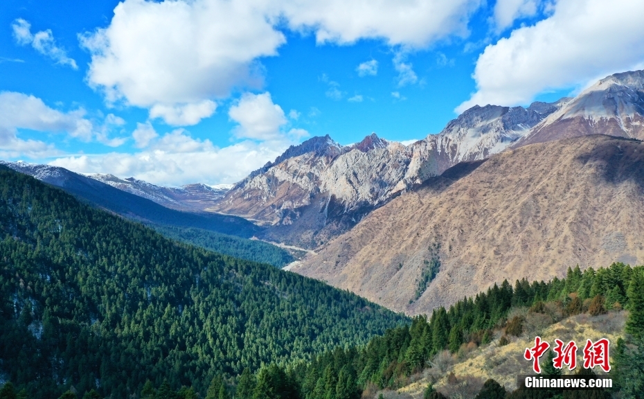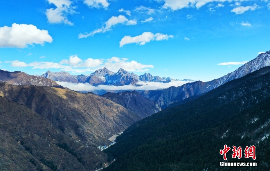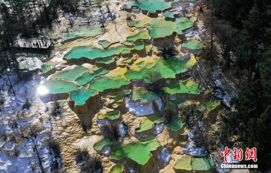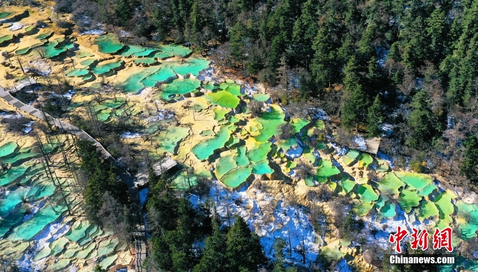 11月18日,航拍四川省阿壩藏族羌族自治州松潘縣黃龍景區(qū)風光。(無人機照片) 中新社記者 安源 攝