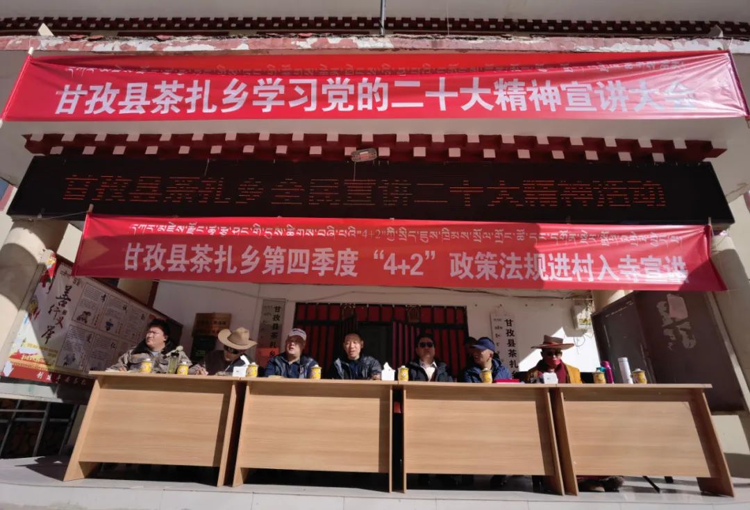 圖為甘孜縣茶扎鄉(xiāng)學習黨的二十大精神宣講會 圖片來源:公眾號“微甘孜”