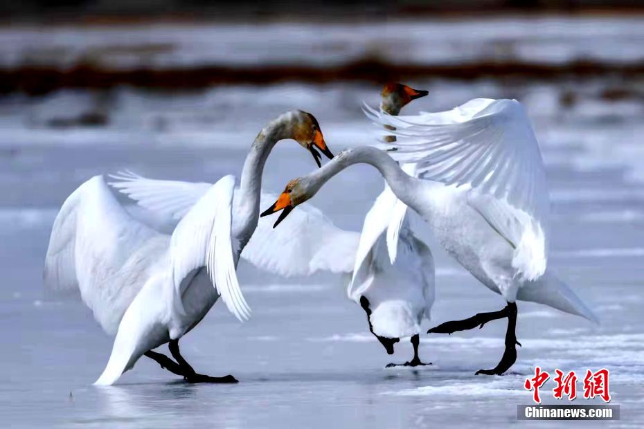 仲冬時節(jié),享有“天下黃河貴德清”美譽(yù)的青海省海南州貴德縣迎來數(shù)十只天鵝“做客”。一群天鵝或在湖面嬉戲,或在水中覓食,在藍(lán)天碧水的映襯下呈現(xiàn)出一幅美景,為冬日的黃河岸畔增添了盎然生機(jī)。