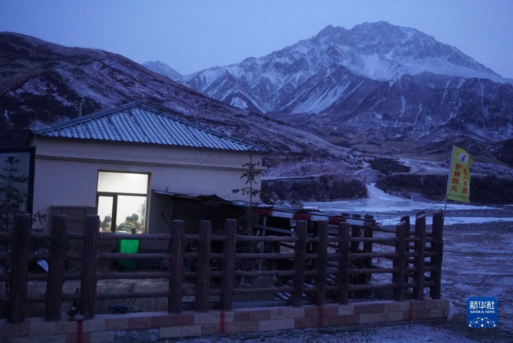 1月14日是北方小年,馬忠華和站上的另外4名生態(tài)管護員依然在崗值班。讓馬忠華欣慰的是,妻子和女兒中午專程從祁連縣城趕來,陪自己共度小年夜。當日14時左右,馬忠華和同事們像往常一樣出現(xiàn)在距離管護站10公里外的山腰間,開始巡護工作。