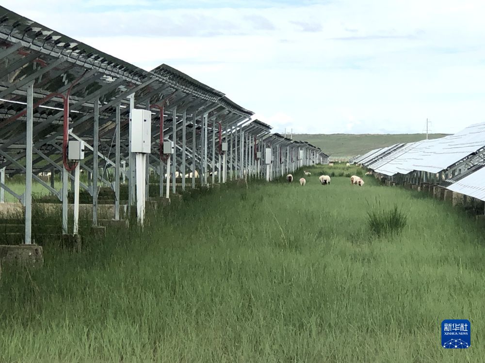 2022年7月,羊群在光伏園區(qū)內(nèi)吃草(資料照片)。新華社發(fā)