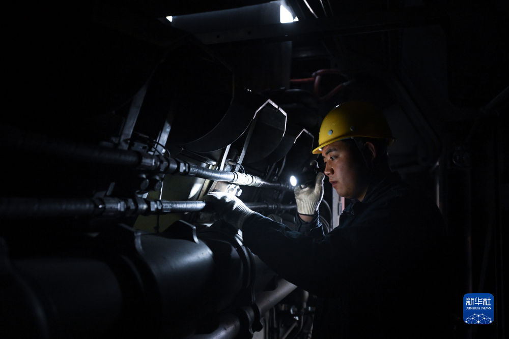 2月4日,在格爾木機(jī)務(wù)段檢修車間,馬國仁在檢修機(jī)車。新華社記者 張龍 攝