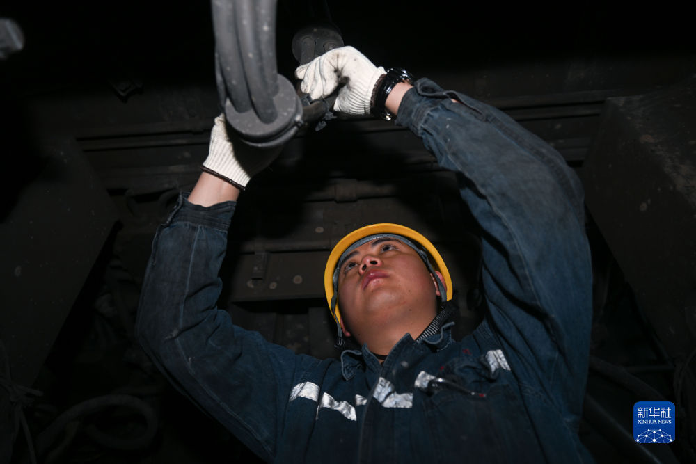 春運(yùn)期間,青藏鐵路加開多趟列車,馬國仁所在的班組變得愈加忙碌。從早上八點(diǎn)半到下午六點(diǎn),馬國仁與工友在車間里不停地下地溝、上機(jī)車,檢查機(jī)車每一個(gè)部件。