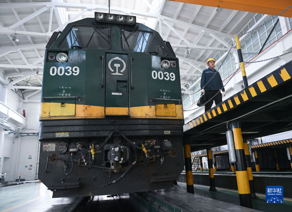 2月4日,在格爾木機(jī)務(wù)段檢修車間,馬國仁在巡檢機(jī)車。新華社記者 張龍 攝