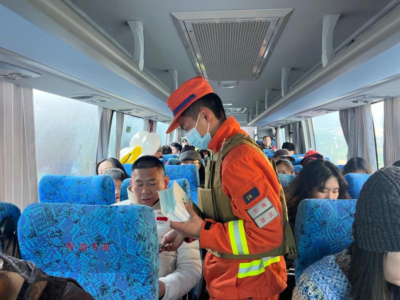 在普達(dá)措國家公園停車場,消防指戰(zhàn)員向游客們發(fā)放《防火宣傳冊》,并將游客的火機(jī)進(jìn)行收納統(tǒng)一保管。