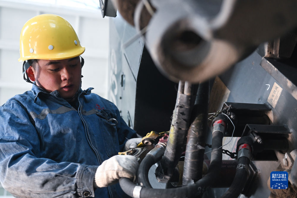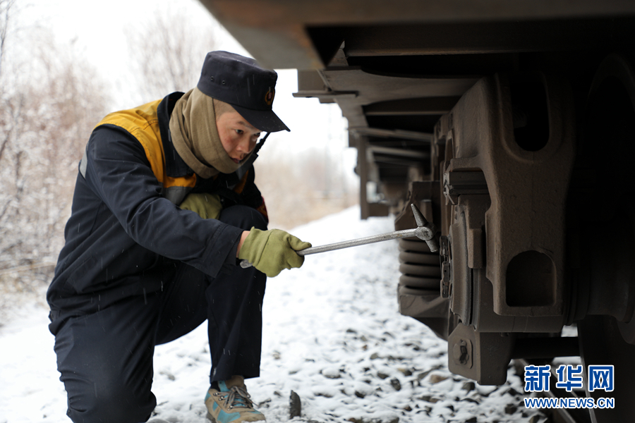 列檢人員對貨運列車進行檢查。新華網(wǎng) 馬建林 攝