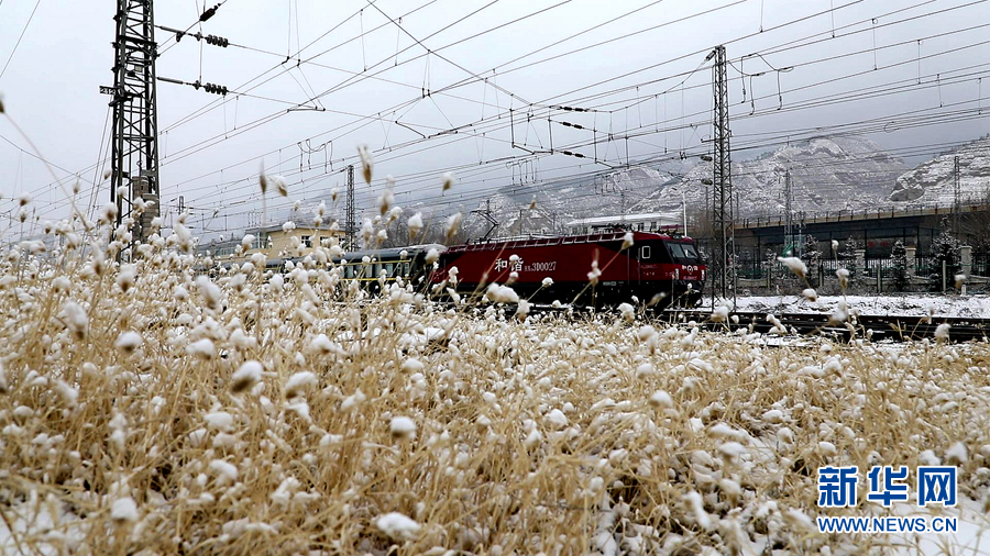 在雪中行駛的列車。新華網(wǎng)發(fā)(馬建林 攝)