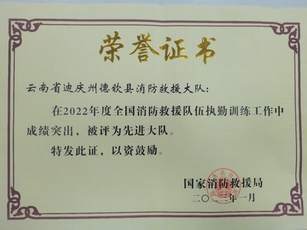 日前,國家消防救援局印發(fā)《關(guān)于表彰2022年度執(zhí)勤訓(xùn)練工作先進單位和個人的通報》,德欽縣消防救援大隊被表彰為2022年度全國消防救援隊伍執(zhí)勤訓(xùn)練工作先進大隊。
