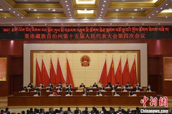 圖為果洛藏族自治州第十五屆人民代表大會(huì)第四次會(huì)議召開(kāi)?!「谋!z