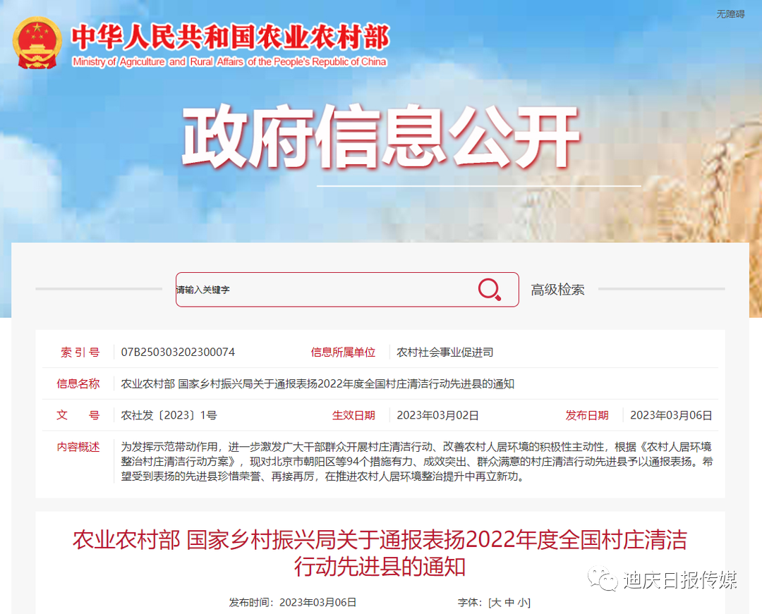 全國(guó)村莊清潔行動(dòng)先進(jìn)縣的通知》