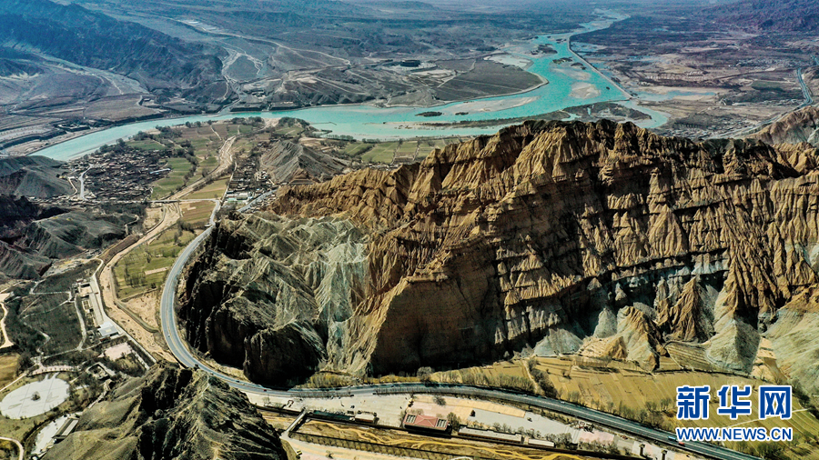 隨著氣溫回暖,位于黃河岸畔的青海省海南藏族自治州貴德縣春意漸濃。從高空俯瞰,貴德國家地質(zhì)公園內(nèi),碧水東流、丹霞相映,勝似一幅奇特瑰麗的高原畫卷。