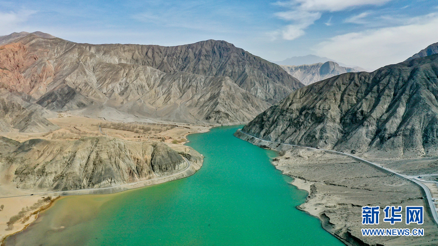 兩側(cè)的山巒與碧綠的黃河相映成趣。新華網(wǎng) 宋忠勇 攝