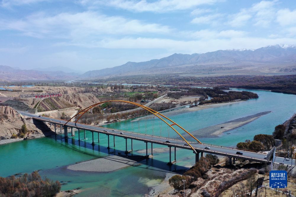 4月9日,車輛從大橋上駛過(無人機照片)。新華社記者 耿輝凰 攝
