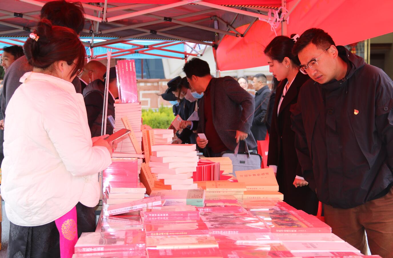 近日,記者在重點(diǎn)出版物展示展銷暨惠民書市活動(dòng)現(xiàn)場(chǎng)看到,迪慶州各大書店在香格里拉大劇院廣場(chǎng)中央擺放著大量習(xí)近平新時(shí)代中國(guó)特色社會(huì)主義思想讀物,吸引著市民前來翻閱購(gòu)買。