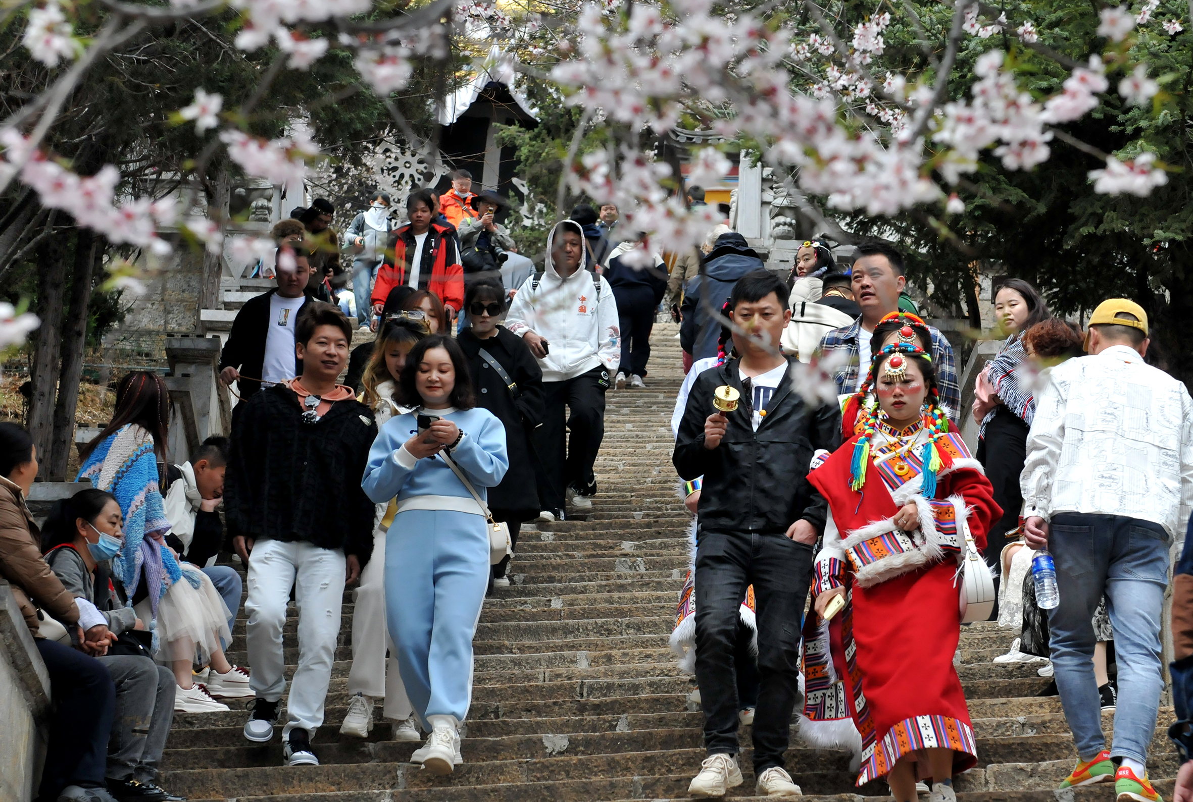 4月以來,香格里拉市獨(dú)克宗古城龜山公園里的毛桃花漸次開放,給本來就火熱的古城旅游帶來新的觀賞點(diǎn)。游人們?cè)诖速p花、體驗(yàn)民俗,其樂融融。