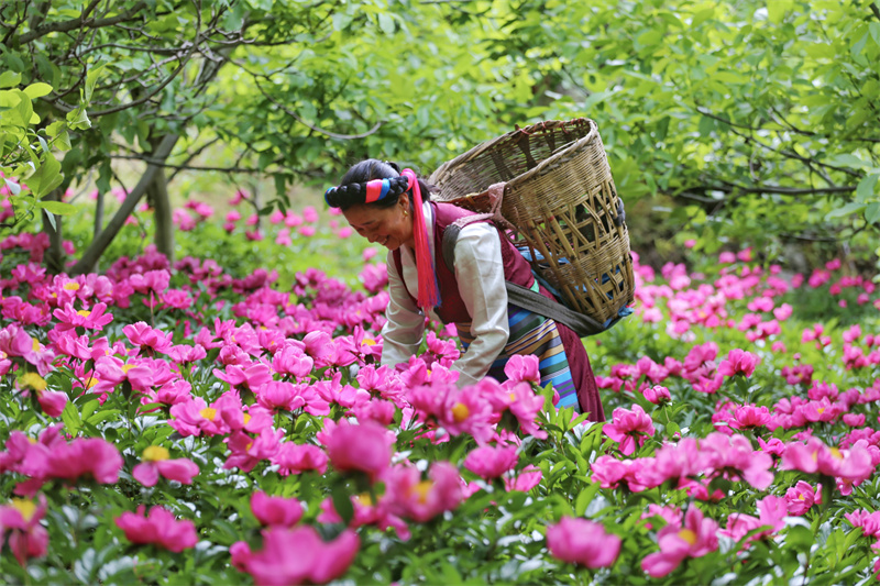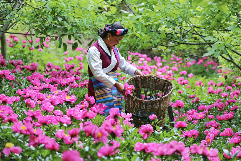 五月,正是芍藥花開(kāi)的最佳時(shí)節(jié)。在維西縣塔城鎮(zhèn)其宗村村民楊小花家的芍藥地中,大片的芍藥花競(jìng)相開(kāi)放,花團(tuán)錦簇、花香四溢,楊小花正在田間忙碌著采摘芍藥花朵,芍藥花及根采挖后都可出售,在增加收入的同時(shí)也成為田間地頭一道美麗的風(fēng)景線。
