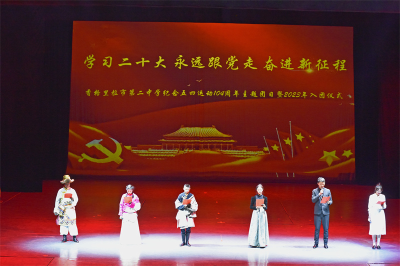 5月4日,香格里拉市第二中學在獨克宗古城花巷劇院開展慶?!拔逅摹鼻嗄旯?jié)暨香格里拉市第二中學第三屆文藝匯演活動。