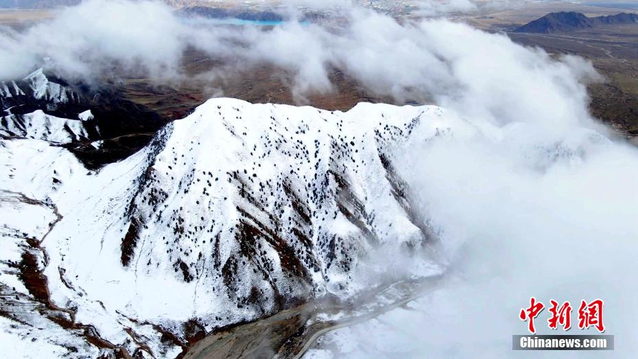 春日五月,攝影愛好者在柴達木盆地的青海省海西蒙古族藏族自治州,航拍州府德令哈市以北的柏樹山。畫面中,春日雪后的柏樹山頂云霧繚繞、云海翻騰,宛若仙境。柏樹山最高峰海拔4000多米,山勢峻峭偉岸。柏樹山西靠巴音河,東臨國道315線,是德令哈市的天然屏障,它像一位壯士守護著德令哈這顆“高原明珠”。登上柏樹山頂峰,鳥瞰山下,德令哈市容和萬般風光盡收眼底。