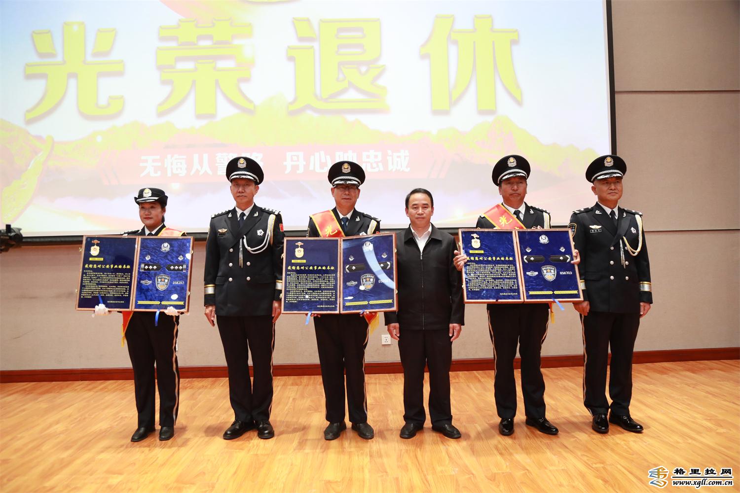 伴隨著陣陣掌聲,4名同志在全體民、輔警的見證下,徐徐入場。榮譽(yù)退休儀式伴隨著激昂嘹亮的《義勇軍進(jìn)行曲》拉開帷幕。