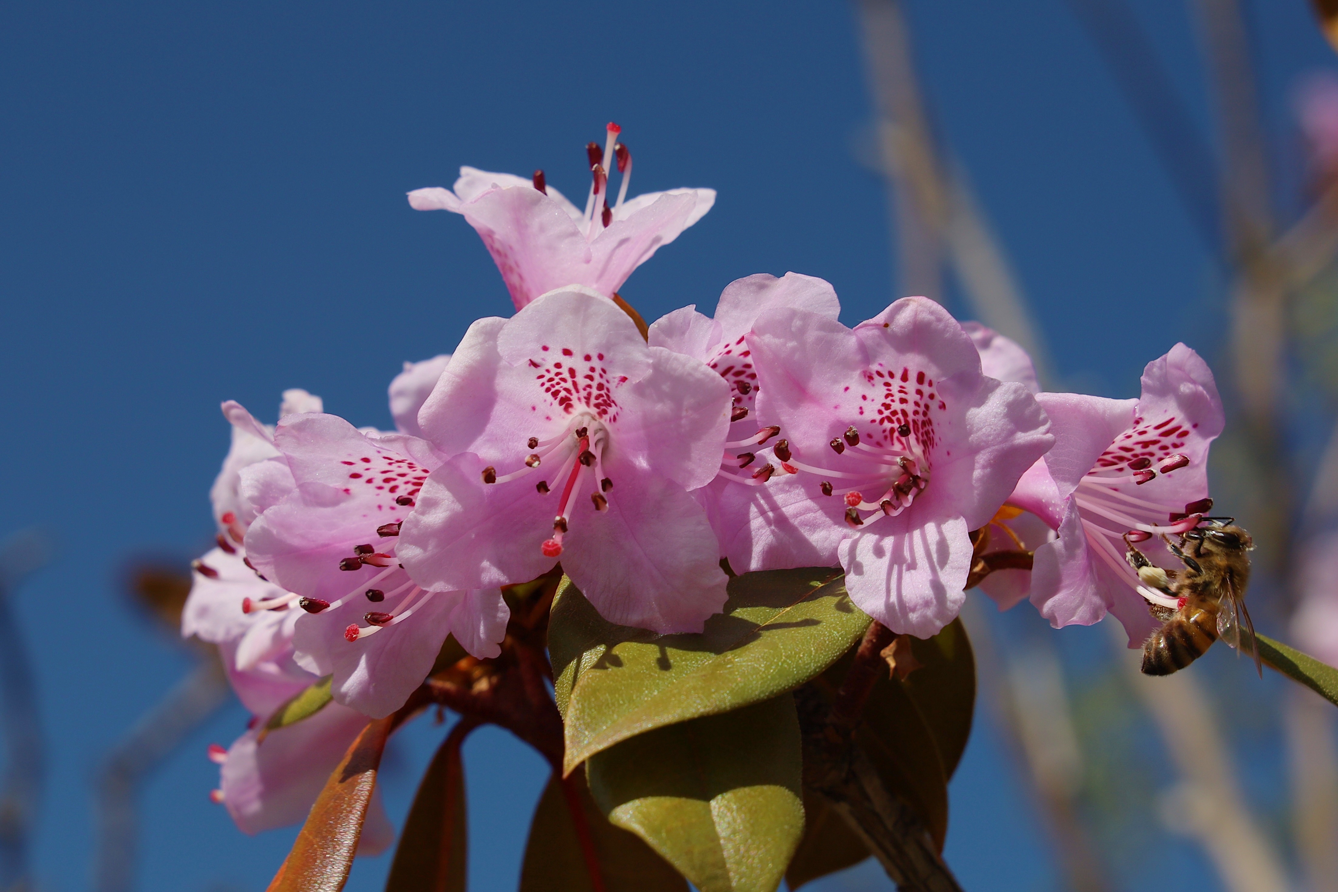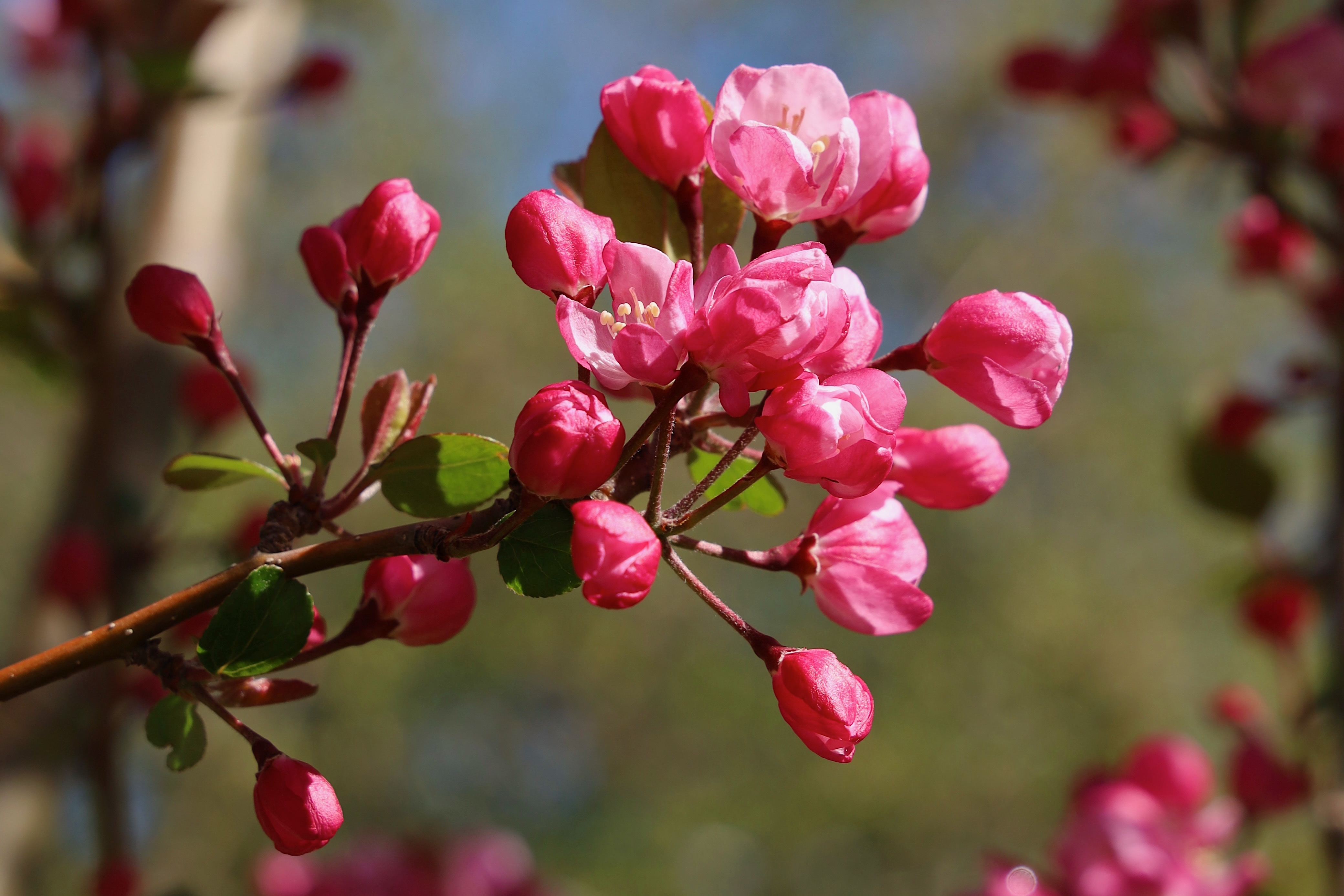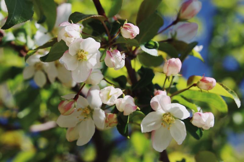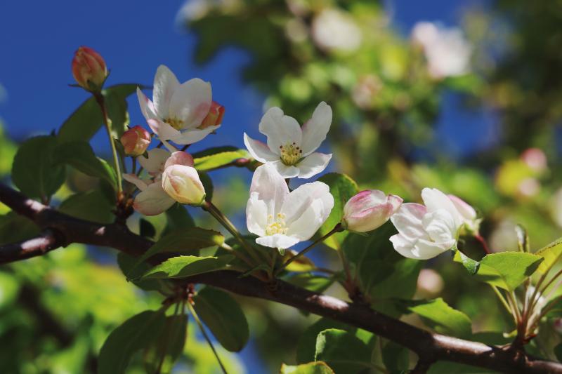 5月,香巴拉公園內(nèi)各色花卉競相開放,天藍更襯花紅,杜鵑花、海棠花、櫻桃李花在光影下變幻著不同的美。微風輕拂,花色明亮,季節(jié)的故事在這一片片花色中演繹開來。