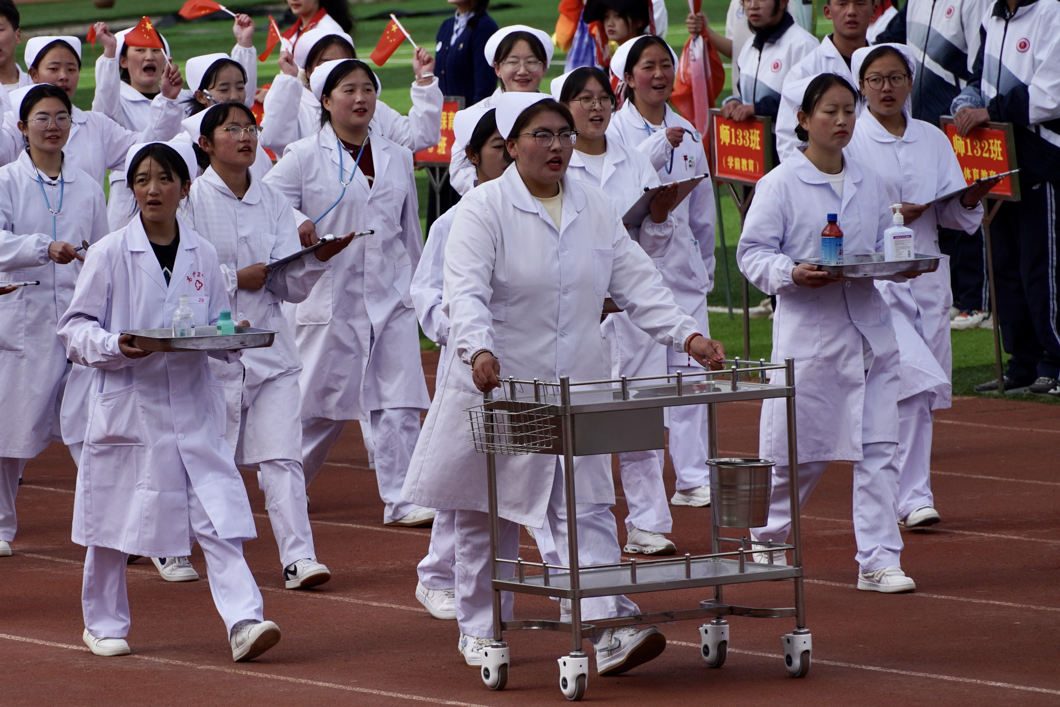入場儀式上,同學(xué)們將體育運動與專業(yè)特色相結(jié)合,進(jìn)行獨具特色的風(fēng)采展示,贏得全場熱烈的喝彩與掌聲。