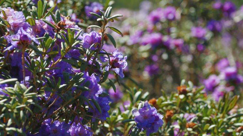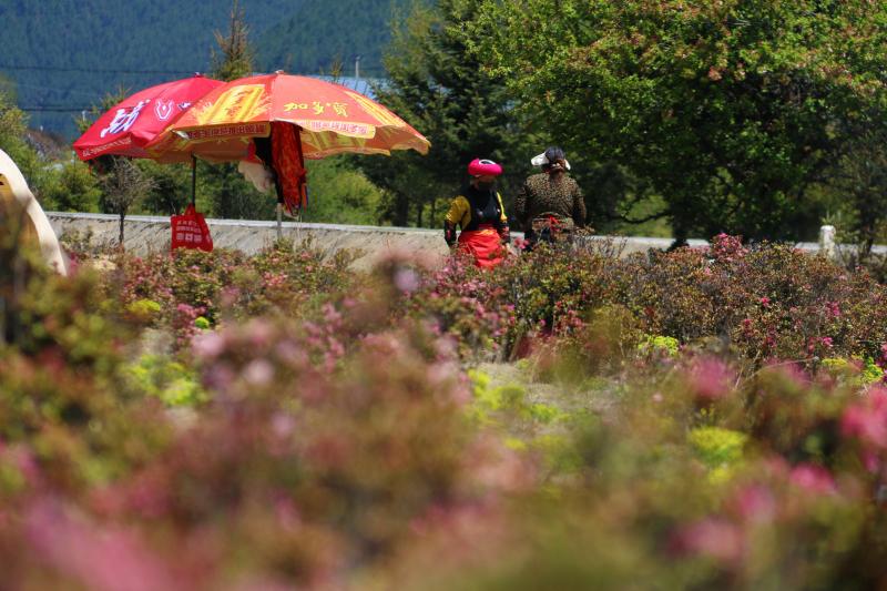 夏天,位于香格里拉市小中甸鎮(zhèn)的杜鵑花海競(jìng)相綻放,紫色、粉色的花朵開成了海,與藍(lán)天白云遙相呼應(yīng),藏房點(diǎn)綴其間,美不勝收。每當(dāng)花季,當(dāng)?shù)氐睦习傩赵诨ê_厰[起特色美食,牦牛酸奶、苦蕎粑粑、酥油茶等美食供游客享用,坐在花海邊,品嘗當(dāng)?shù)靥厣朗常沁@個(gè)夏天小中甸花海獨(dú)有的浪漫。