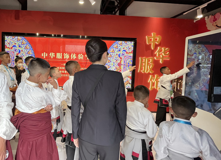 圖為玉樹(shù)少年們用科技手段“試穿”各民族服飾 攝影:王茜